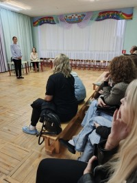 Далее учитель-логопед, Васильева Н. А., рассказала о содержании программы дошкольного образования по образовательной области "Речевое развитие", показав пример описательного рассказа, звукового анализа слова, а также продемонстрировав мотивирующие методы и приемы работы над развитием речи детей дома.